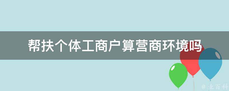 帮扶个体工商户算营商环境。个体工商户是我国非公有制经济的重要组成部分,也是我国经济和社会发展的重要力量。优化营商环境是促进个体工商户发展的重要保障,也是推动经济高质量发展的重要举措。帮扶个体工商户,可以改善他们的经营环境,提高他们的竞争力和发展潜力,从而促进整个市场的发展和繁荣。