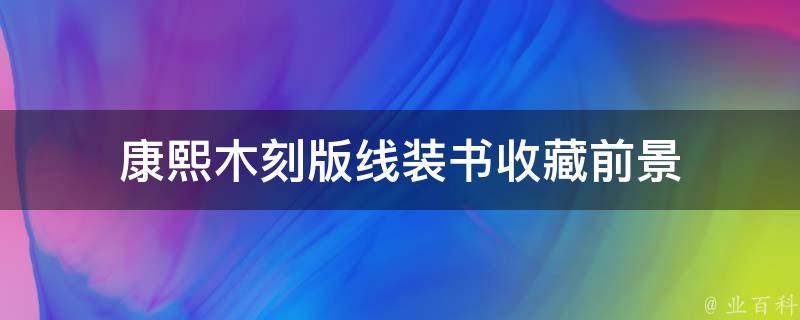 最佳答案康熙木刻版线装书有较高的收藏价值,前景较好。这类书籍是清代线装书的代表,具有较高的艺术价值和历史价值。康熙木刻版线装书在印刷技术、版式、字体、纸张等方面都有独特之处,其内容涵盖了经、史、子、集等各个领域,是中国古代文化的重要组成部分。随着时间的推移,这些书籍的数量会越来越少,...