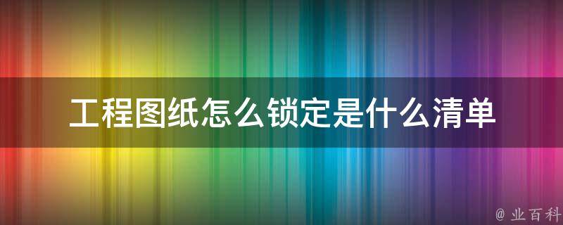 最佳答案工程图纸锁定清单的方法:选择需要锁定的工程图纸视图,右键单击视图,选择锁定位置;在弹出的对话框中,选择锁定选项,点击确定按钮即可。锁定之后,即使在三维模型中进行了修改,工程图纸视图也不会改变,如果需要解除锁定,可以再次右键单击视图,选择解除锁定位置。