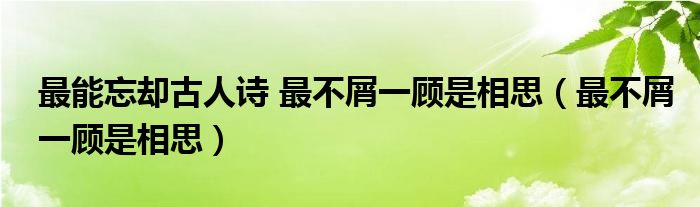 大家好,我是小科,我来为大家解答以上问题。最能忘却古人诗 最不屑一顾是相思,最不屑一顾是相思很多人还不知道,现在让我们一起来看看吧!