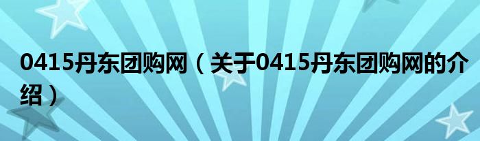 0415丹东团购网(关于0415丹东团购网的介绍)