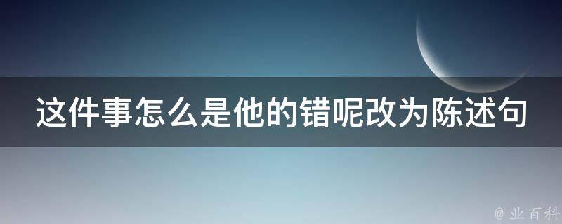这件事怎么是他的错呢改为陈述句是:这件事不是他的错。反问句改为陈述句的方法:将反问句中的肯定词改为否定词,或将否定词改为肯定词;将反问句中的反问语气词(怎、怎么、难道等)去掉;将句末的疑问助词(呢、吗等)去掉,问号改为句号。