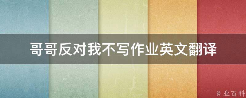 哥哥反对我不写作业的英文翻译是Brother opposes me not doing homework。英语是一种西日耳曼语支,最早被中世纪的英国使用,并因其广阔的殖民地而成为世界使用面积最广的语言