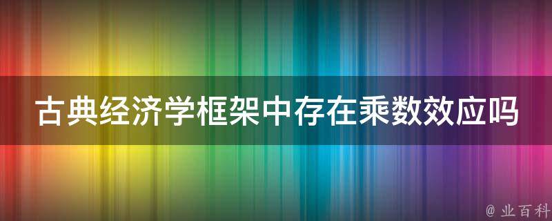 最佳答案古典经济学框架中不存在乘数效应。乘数效应是1940年代以后,由凯恩斯在《就业利息货币通论》中突出强调的,是凯恩斯主义经济学的产物。而古典经济学是指1870年代边际革命以前的经济学,所以古典经济学框架中存在乘数效应。
