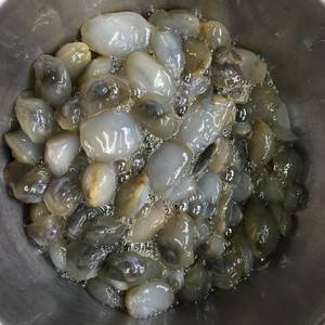 2、锅里放水烧开,放入泥螺,煮至冒泡后马上关火,去除黏液。