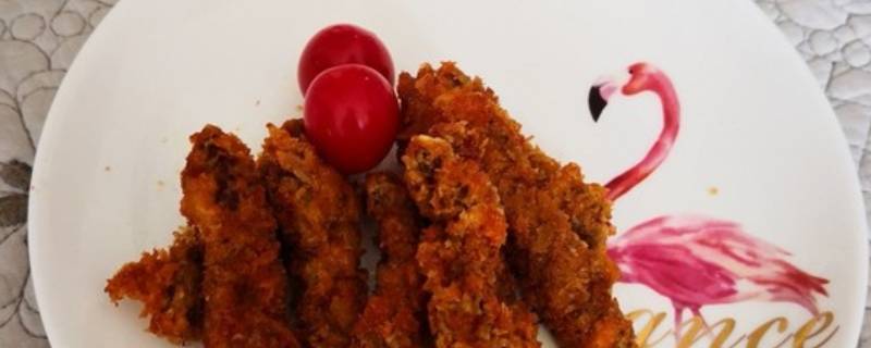4、将腌好的牛肉片以此裹上面粉、蛋液和面包糠备用。