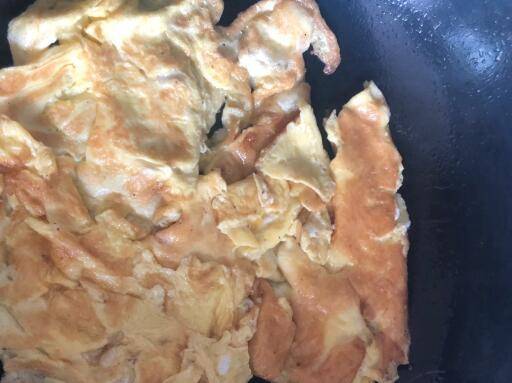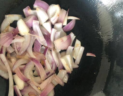 将煎好的鸡蛋乘出备用,然后倒入洋葱翻炒。