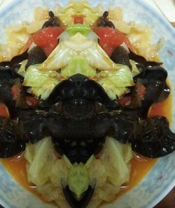圆白菜半个、木耳一小把、西红柿半个。