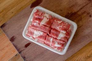 3、牛肉片和虾提前解冻。