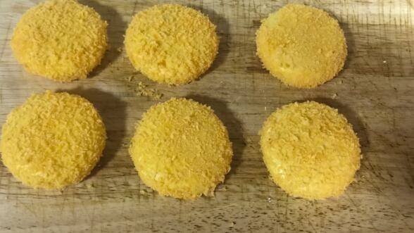 蘸上鸡蛋液,粘上面包糠,全部做好备用。