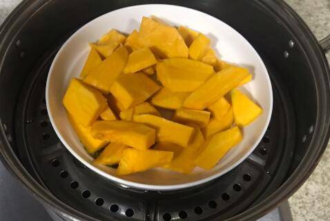 南瓜去皮去瓤,切成小块上锅蒸熟。