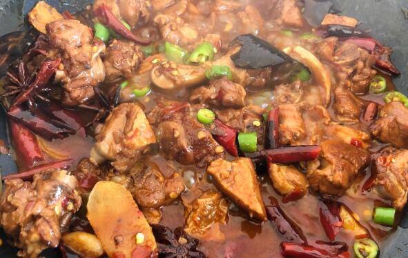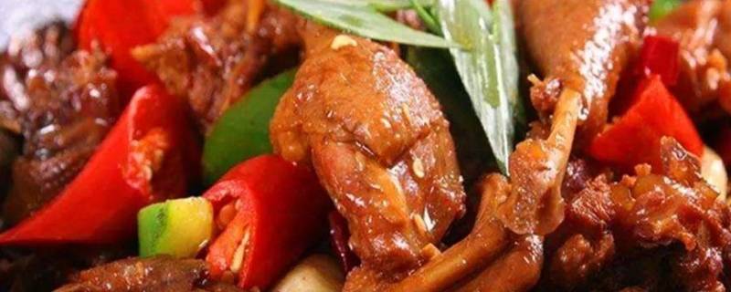 鸭腿肉700克、姜8片、蒜8颗、小米辣2颗、葱2根、八角3颗、桂皮3克、香叶4片、啤酒1瓶、干辣椒15克、尖椒2根。