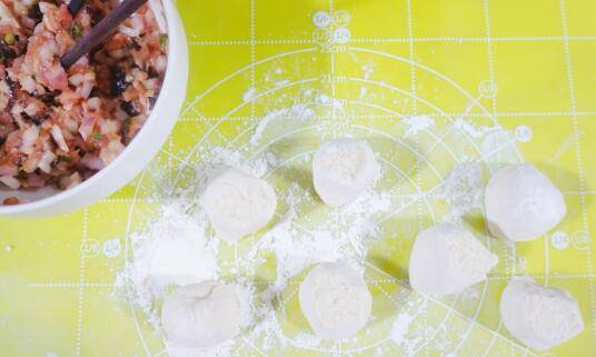 7、将小面团分成均匀的小剂子,将剂子擀成面片。