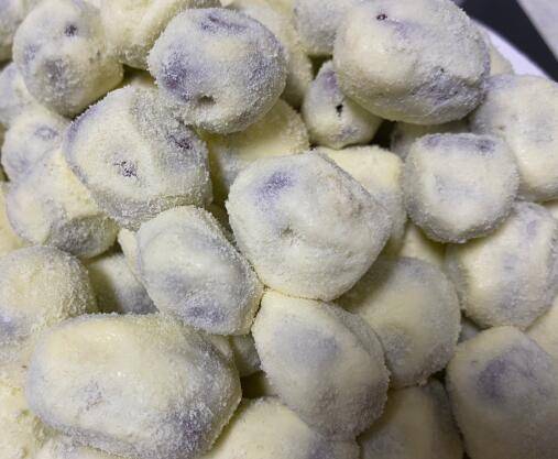 趁热把它们分离,搓圆,放入盘中裹一层奶粉,防粘。