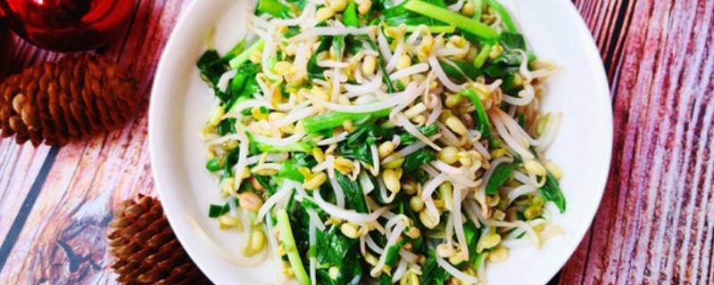 用料:豆芽300克、韭菜200克、食用油适量、姜适量、葱适量、花椒数粒、大料1粒、醋少许、盐少许、米醋少许。