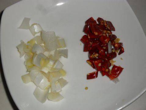 6、放入萝卜丁加盐翻炒片刻,加小半碗水炖一下。