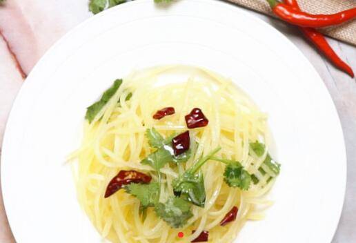 最佳答案主料:土豆500克。辅料:蒜末5克、香菜1根、花椒2克、干辣椒3克、白醋10克、盐2克。香菜1根切段,土豆500克去皮擦丝。清水500毫升,大火煮沸,倒入土豆丝,焯水30秒。锅中放入食用油5毫升,倒入蒜末、花椒2克、干辣椒3克,大火爆香。倒入土豆丝,倒入调料、香菜、白醋10克、盐2克,搅拌均匀。成品。