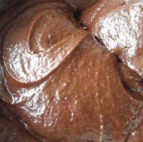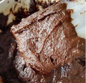 2、油放在一边,直到巧克力成非常黏稠的浆糊,再慢慢加油。