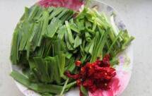 2、把韭菜洗净切段,辣子皮洗净切末。