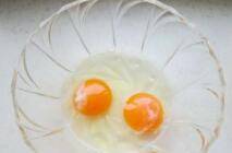 4、热锅凉油,加鸡蛋煎成鸡蛋块。