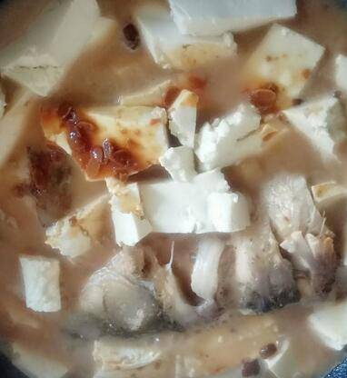用料:鱼1000克、豆腐1块、香菜1棵、生抽半勺、陈醋半勺、白酒小半勺、糖1勺、鸡精1勺、盐1勺、大酱汤1勺、葱1/4段、蒜半头、花椒1颗、丁香2粒、桂皮1小块、草扣1/3粒、砂仁1粒、良姜1/2块。
