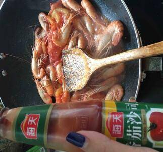 最佳答案主料:虾鸡尾虾40只。辅料:番茄1个、番茄酱1勺、玉米油少许、海盐少许。开水烫虾,把虾用开水烫一下,变色即可。将番茄切片备用。锅预热放油。把番茄倒入热油中,翻炒融化。再把大虾倒入锅中和番茄一起翻炒。再放番茄酱一起翻炒,炒五分钟即可。成品。