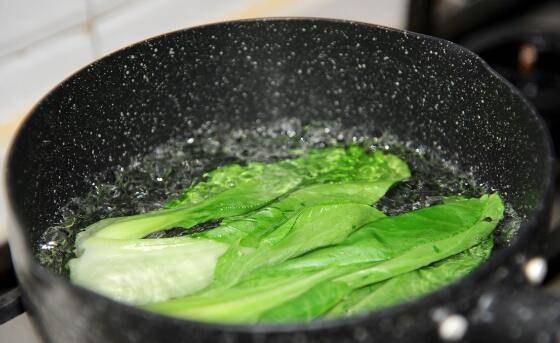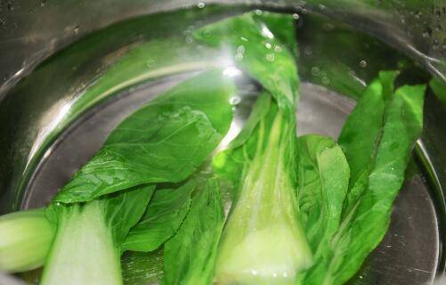 1、小油菜洗净,锅中放入适量的水烧开,放少许盐,放入油菜焯水。