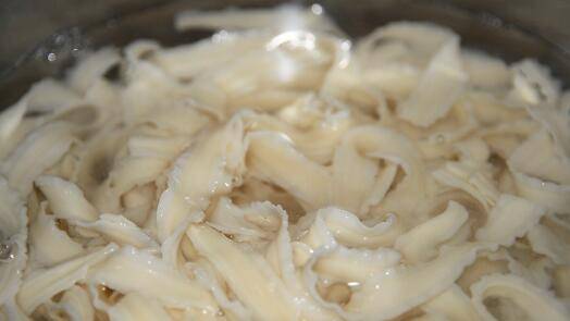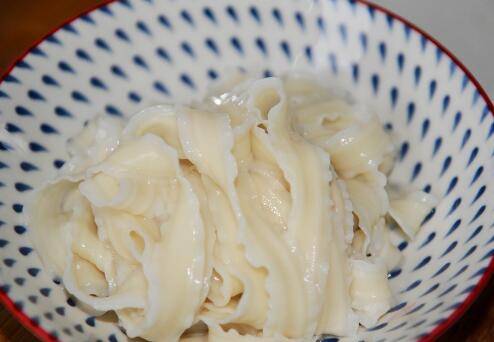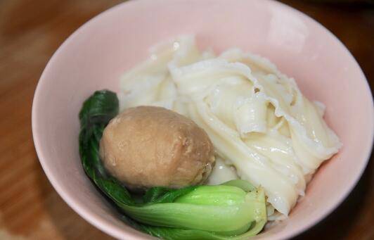 用料:刀削面挂面150g、牛肉丸4个、小油菜3棵、鸡汁20g、清水500g、盐少许。