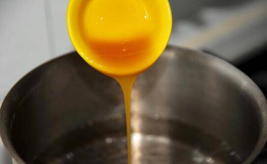 4、锅中放入适量清水烧开,放入鸡汁搅拌均匀。