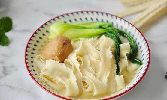 最佳答案用料:刀削面挂面150g、牛肉丸4个、小油菜3棵、鸡汁20g、清水500g、盐少许。1、小油菜洗净,锅中放入适量的水烧开,放少许盐,放入油菜焯水。2、烫好的油菜放入冷水中备用。3、刀削面煮熟放入冷水中冷却备用。4、锅中放入适量清水烧开,放入鸡汁搅拌均匀。5、放入牛肉丸,将牛肉丸煮至浮起 煮熟。 ...