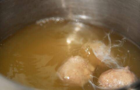 5、放入牛肉丸,将牛肉丸煮至浮起 煮熟。 放入少许盐调味即可。