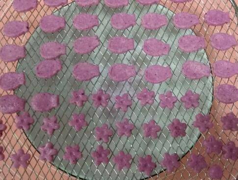 最佳答案火龙果泥10克、炼奶10克、奶粉60克、橙汁9克、炼奶10克、奶粉60克、干果机1台。先称果泥,加入炼奶,搅拌均匀。搅拌果泥倒入奶粉中,和成团。擀成3毫米左右的厚度,用模具压出图案。放入干果机中,80度3小时烘干即可。