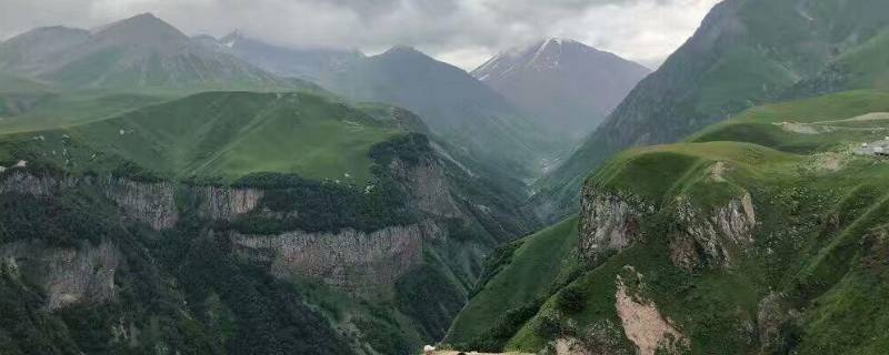 位于黑海和里海之间,自西北向东南蜿蜒,其中大高加索山脉是亚欧两洲分界线的一部分。大高加索山脉全长1200公里,可分为东、中、西三段。东、西两段山势较低,海拔在4000米以下,山体宽度为200公里左右。中段山体较窄,山势高峻,许多山峰海拔在5000米以上,厄尔布鲁士山为最高峰,海拔5642米。
