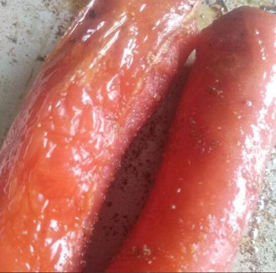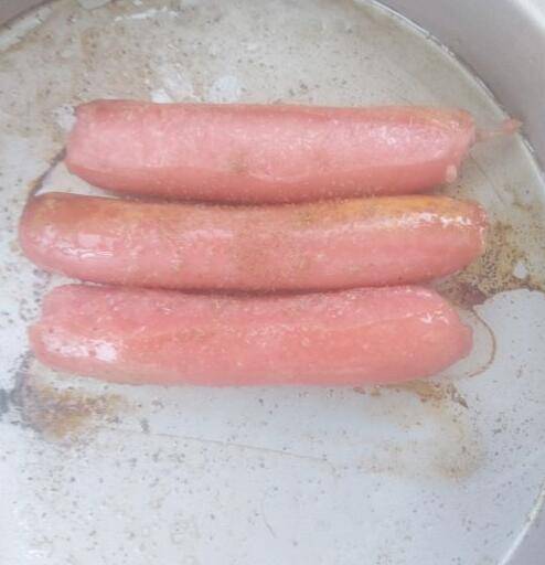 2、准备香肠3根,刷一层食用油。