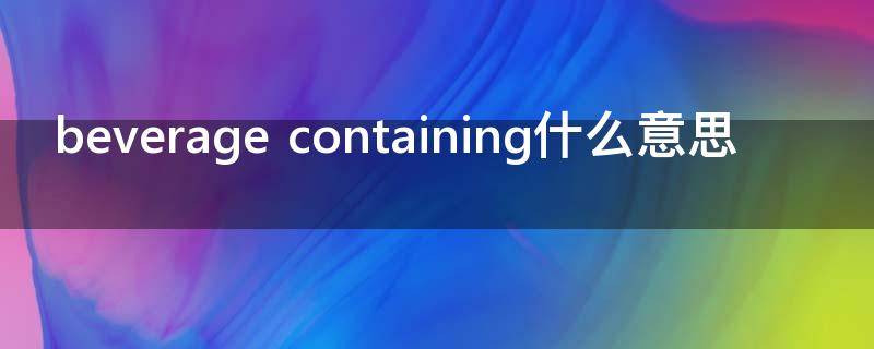 最佳答案beverage containing是含饮料的意思。英语是一种西日耳曼语支,最早被中世纪的英国使用,并因其广阔的殖民地,而成为世界使用面积最广的语言。英国人的祖先盎格鲁部落是后来迁移到大不列颠岛地区的日耳曼部落之一,称为英格兰。这两个名字都来自波罗的海半岛的Anglia。该语言与弗里斯兰语和下撒克森...
