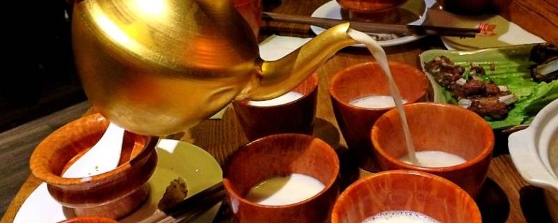5、酥油茶:酥油茶的做法比较简单,先烧一壶清茶,将滚烫的茶水倒入茶桶内,放上少量的碾细的核桃仁或北瓜子仁或麻子仁,再放少许酥油、奶粉和盐,然后用力向上扯桶杆,这样反复扯数十下,一般扯一百下,让佐料充分合匀,呈牛奶状后倒入壶中,在火边温热即可食用。酥油茶味香、口感好,有淡淡的酥油味和籽仁香味。