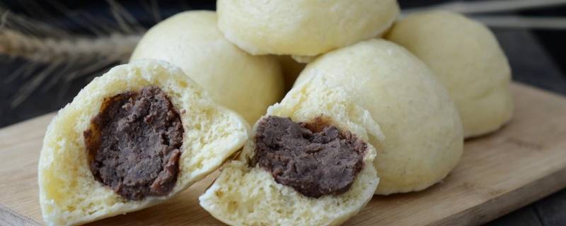 5、将面粉、水、酵母、糖揉成光滑的面团,分成50克一个的剂子擀开,将豆沙包起来。