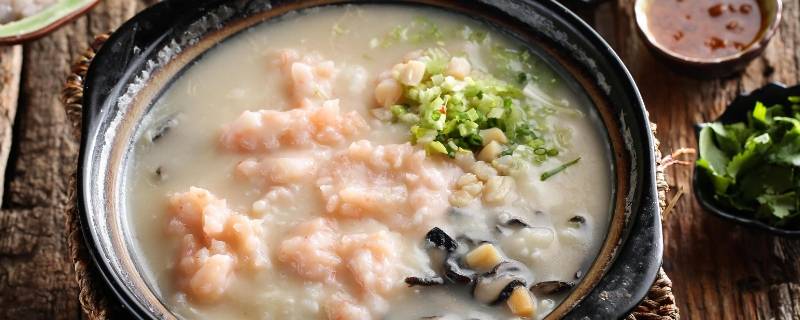 4、白粥煮的稍微黏稠有米油时,即可下塘鲺鱼。