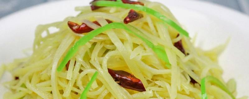 土豆2个、青椒1个、蒜头2瓣、香葱1棵、陈醋少许、白醋1勺、盐适量、鸡精少许。
