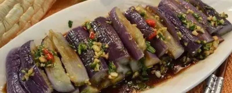 5、将料汁浇在茄子上后,加热一勺油,泼在茄子上,即成。