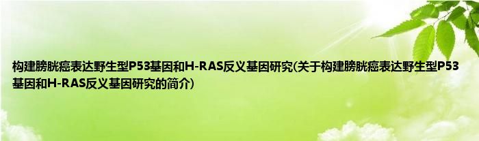 大家好,构建膀胱癌表达野生型P53基因和H-RAS反义基因研究,关于构建膀胱癌表达野生型P53基因和H-RAS反义基因研究的简介很多人还不知道,现在让我们一起来看看吧!