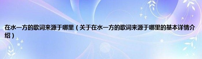 本文关于在水一方的歌词来源于哪里的基本详情介绍就讲解完毕,希望对大家有所帮助。