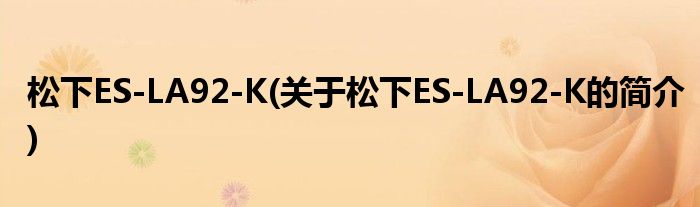 本文关于松下ES-LA92-K的简介就讲解完毕,希望对大家有所帮助。