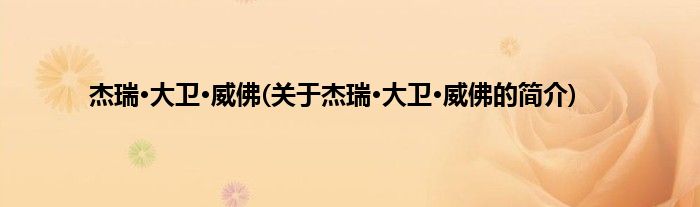 杰瑞·大卫·威佛(关于杰瑞·大卫·威佛的简介)