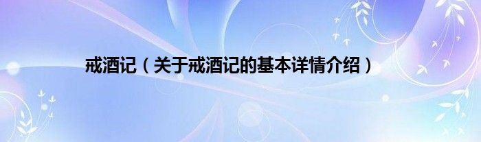 本文关于戒酒记的基本详情介绍就讲解完毕,希望对大家有所帮助。
