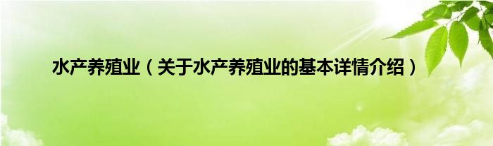本文关于水产养殖业的基本详情介绍就讲解完毕,希望对大家有所帮助。