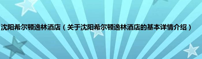 本文关于沈阳希尔顿逸林酒店的基本详情介绍就讲解完毕,希望对大家有所帮助。