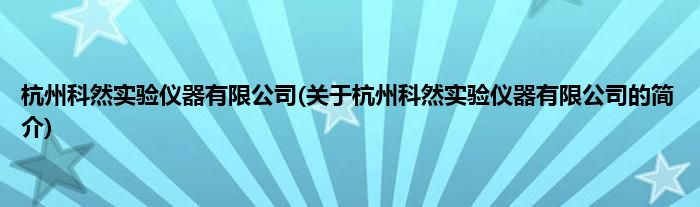 本文关于杭州科然实验仪器有限公司的简介就讲解完毕,希望对大家有所帮助。