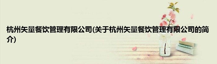 本文关于杭州矢量餐饮管理有限公司的简介就讲解完毕,希望对大家有所帮助。