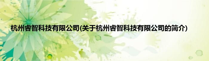 本文关于杭州睿智科技有限公司的简介就讲解完毕,希望对大家有所帮助。
